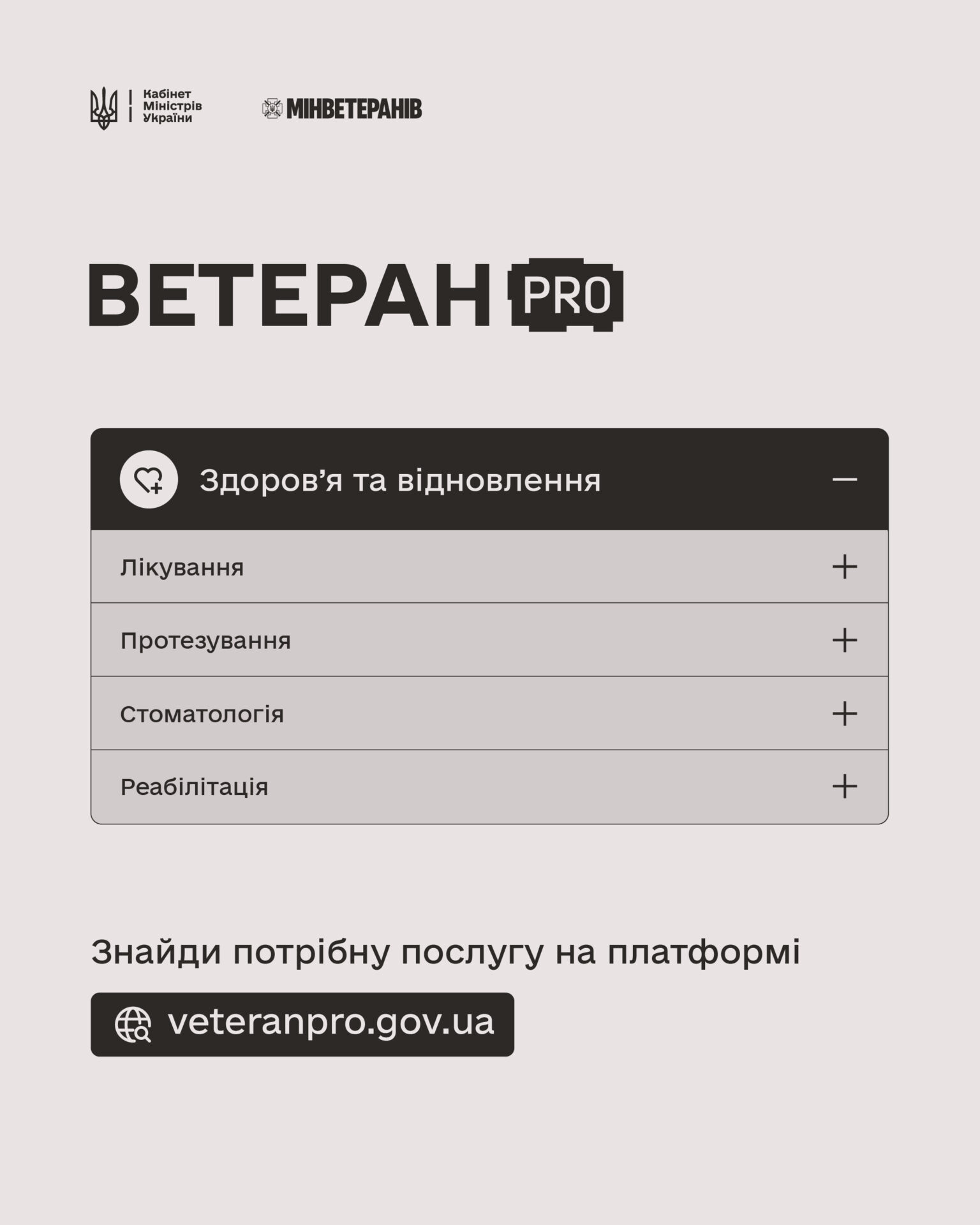 Дізнайтесь про доступні послуги на платформі ВетеранPRO: