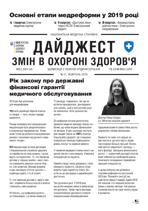 Дайджест змін в охороні здоров’я 11 Дата публікації: 29 Жовтня 2018 року. Опубліковано в Реформа МОЗ. « Назад Вперед »