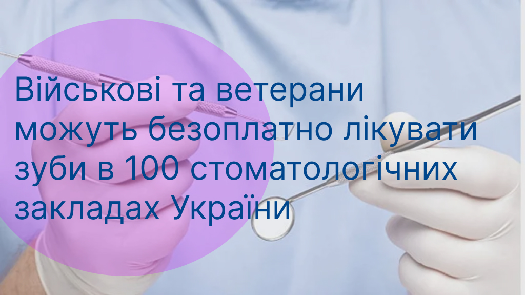 Військові та ветерани окрім зубопротезування можуть безоплатно отримати послуги із лікування зубів в межах пілотного проєкту “Зубопротезування окремих категорій осіб, які захищали незалежність, суверенітет та територіальну цілісність України”.